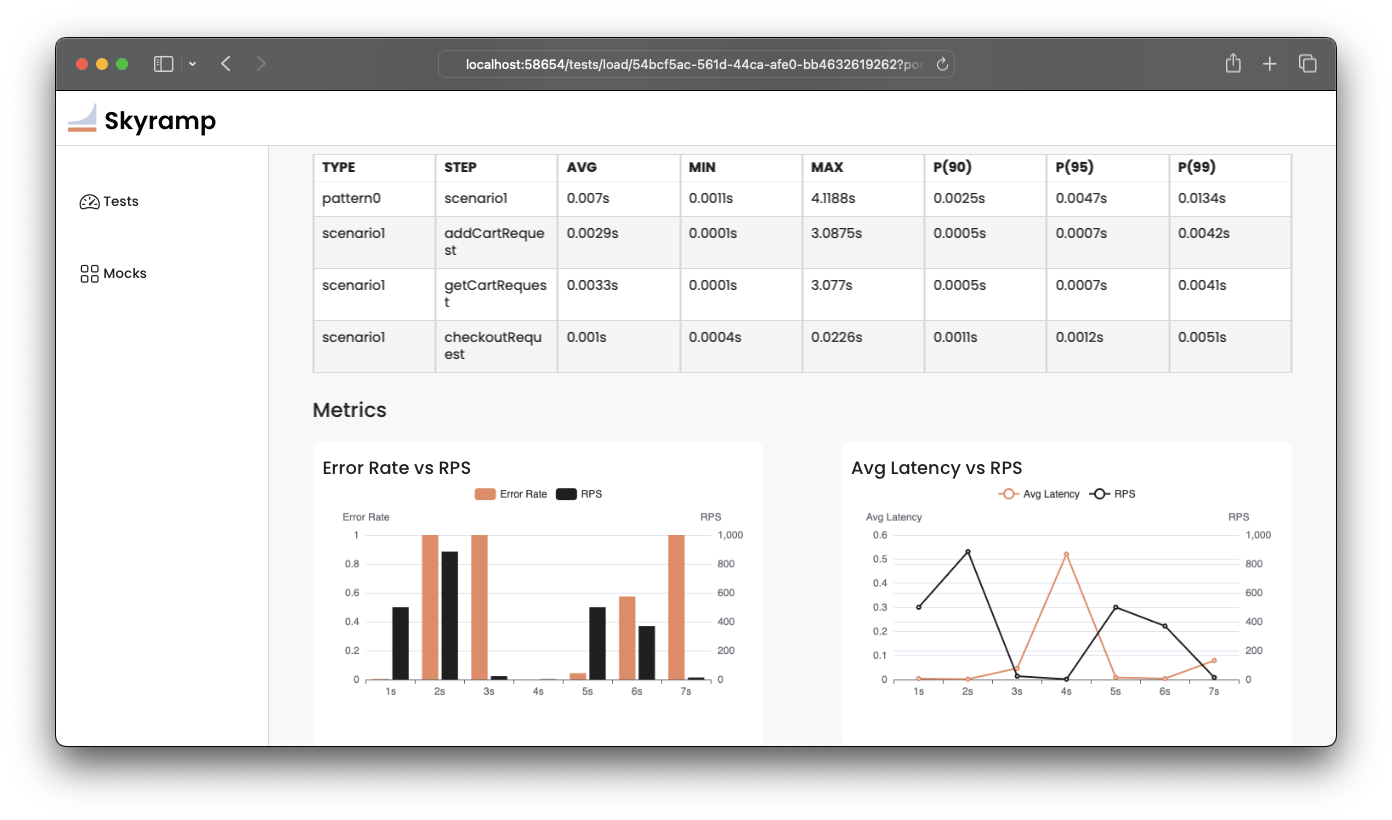 For a Grafana dashboard instead, use the--grafana (shorthand: -g) option in the skyramp dashboard up command.