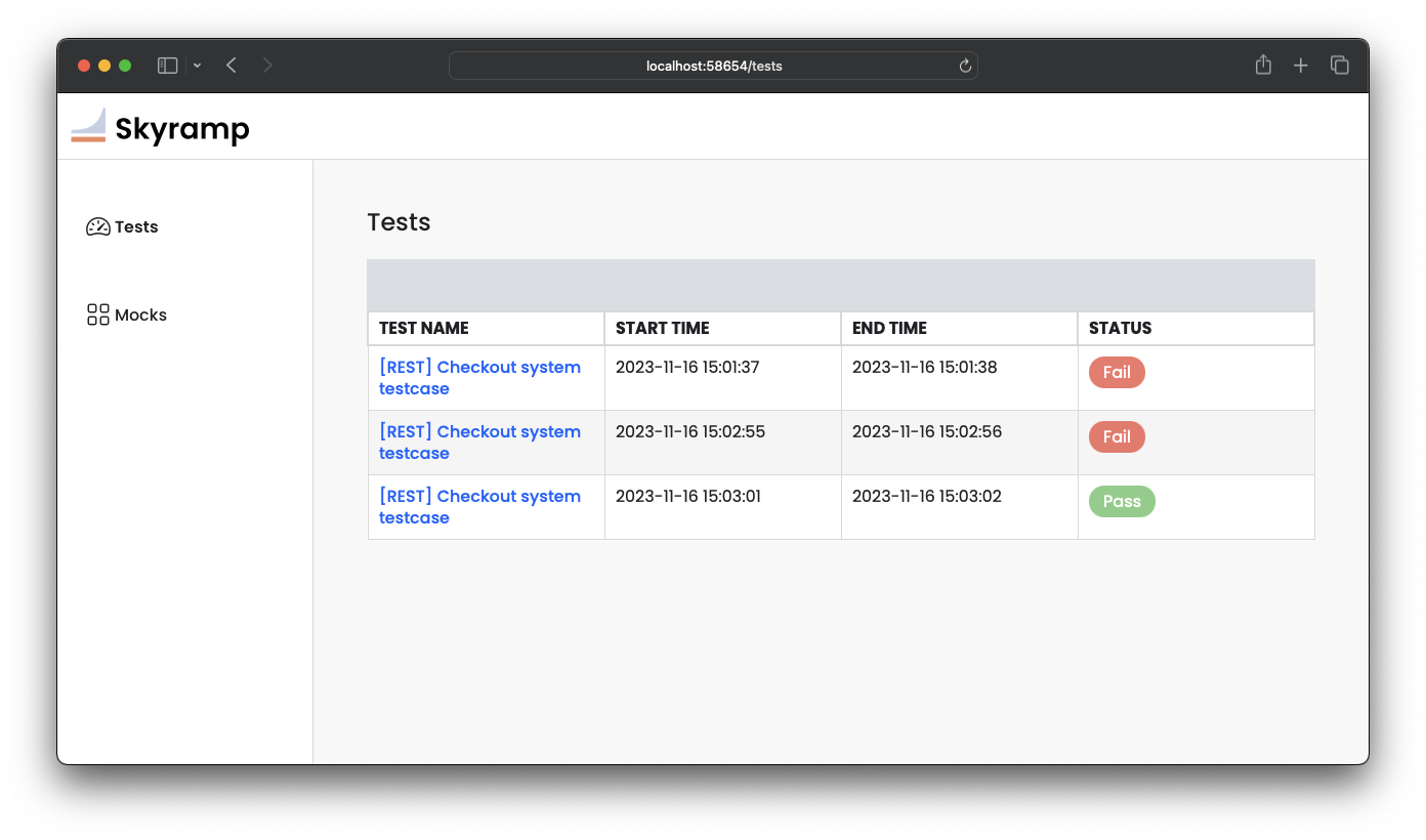 Welcome to the Skyramp Dashboard documentation. This guide will walk you through deploying and utilizing the Skyramp Dashboard on your Kubernetes cluster, allowing you to efficiently manage test results, mocks, and maintain records of your test runs.